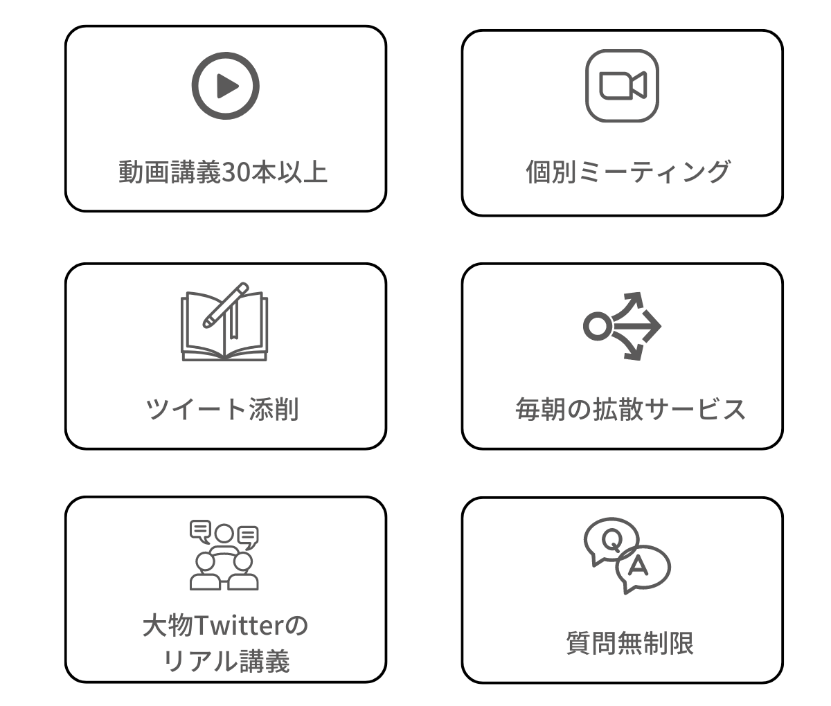 毎回、万以上のインプレッション、100以上のいいねを叩き出しているツイートの作成方法を伝えます。動画ではもちろん初月のツイート添削、毎月のミーティングで伸びるツイートの作成方法が分かります。